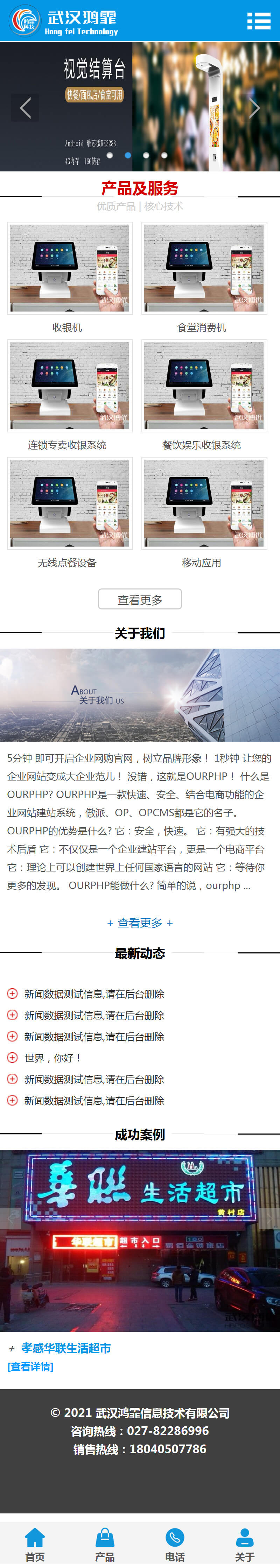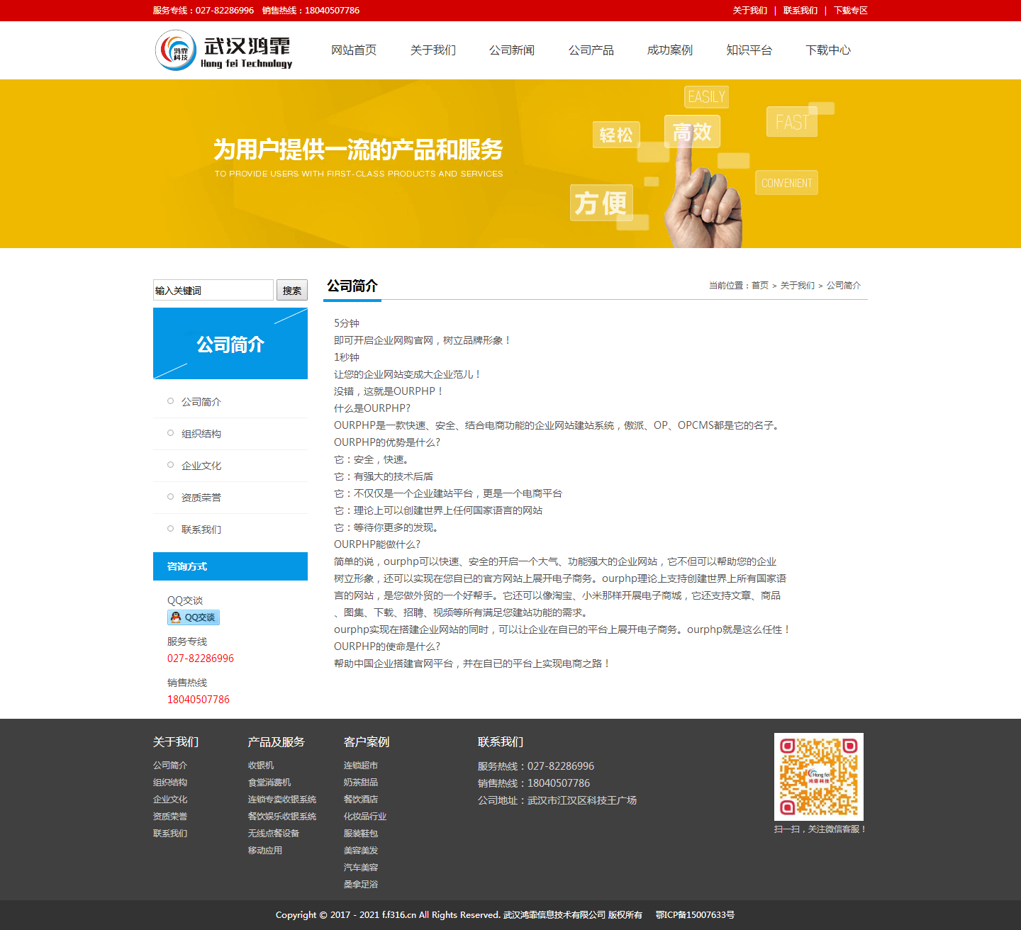 鸿霏科技采用我司的OURPHP系统搭建完成
