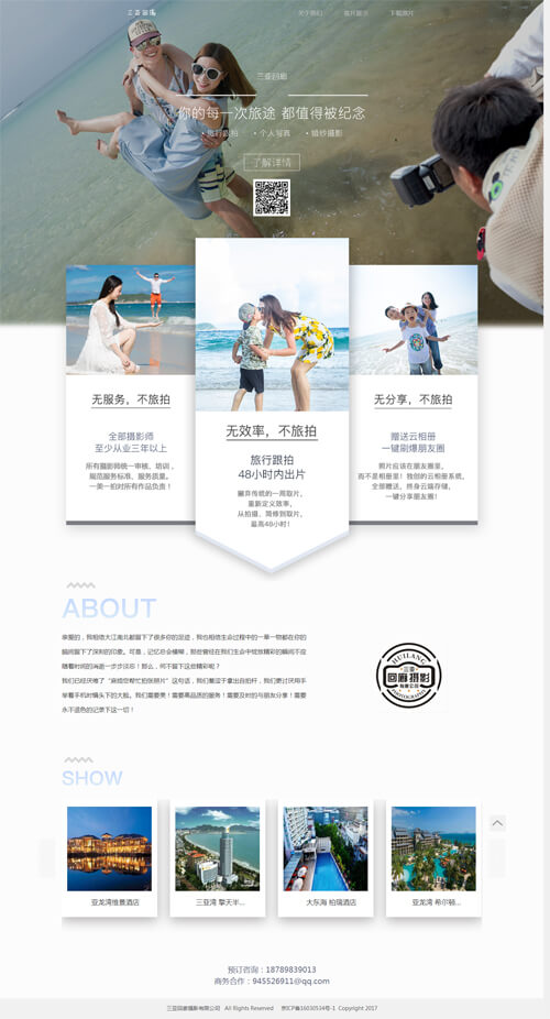 三亚回廊摄影有限公司是我司多年客户,此次开发的三亚回廊官网主要以用户在线自取照片及下载高清照片包为主要功能的网站系统。页面风格及系统功能由我司设计开发完成。