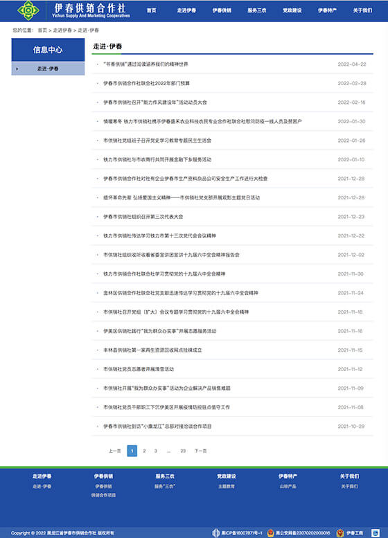 伊春供销合作社是国企系统,采用我司OURPHP系统开发完成。整体网站风格按客户要求开发设计,采用简单明了的计设方案,符合国企部门,政府网站对简洁的要求。